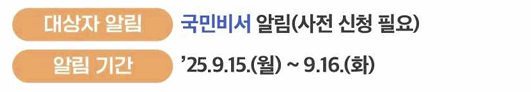 - 사전 안내 : 국민비서 "민생회복 소비쿠폰 안내" 서비스 신청시 9월 15일(월) 오전부터 안내 예정